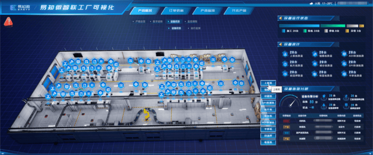 针对上述痛点,结合企业业务特色,易知微凭借自身技术实力,依托EasyModel和AI智能体,为该世界级物联网企业量身打造了全流程产线数智化升级方案,以“设备产线动态管控,远程联动科学运维”为核心,打通生产全链路,破解转型难题。